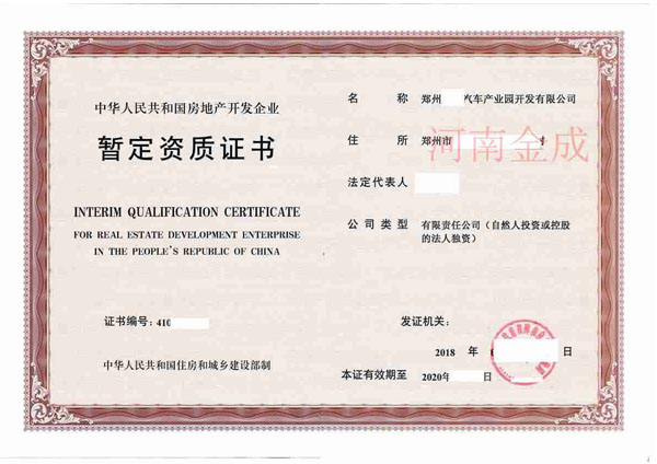 • 4.鄭州房地產開發資質代辦多少錢暫定級如何延期